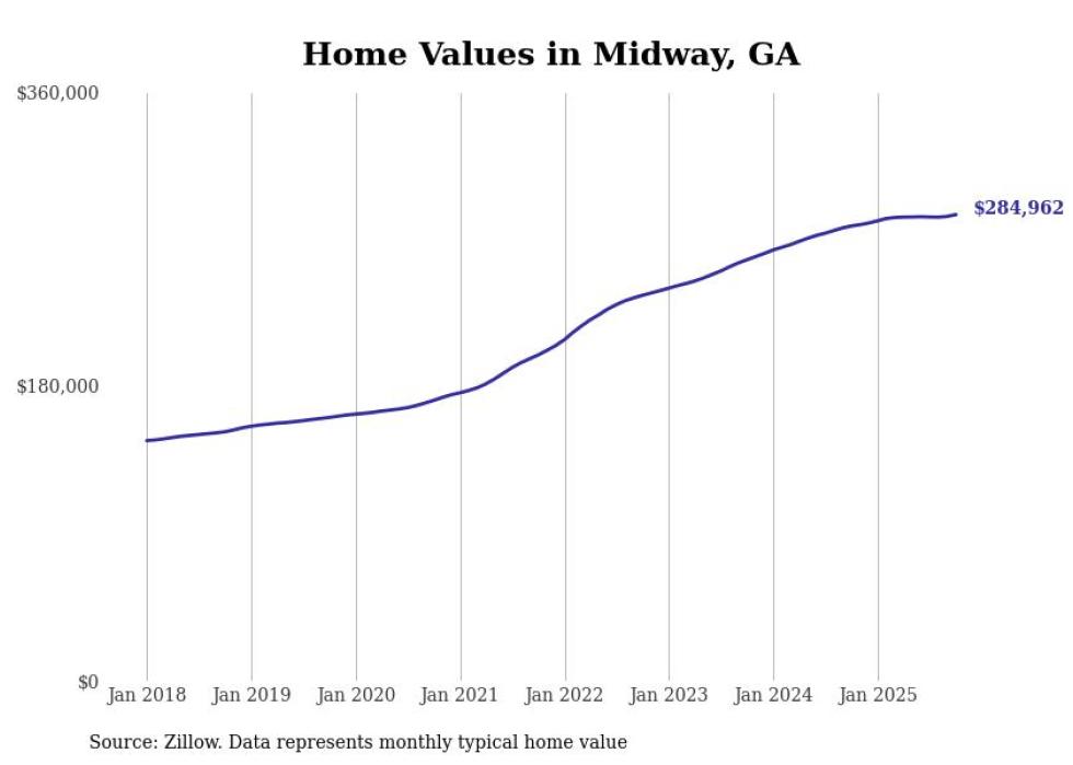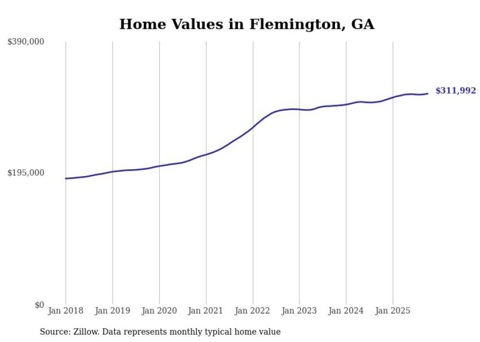 Cities with the fastest-growing home prices in the Hinesville metro area