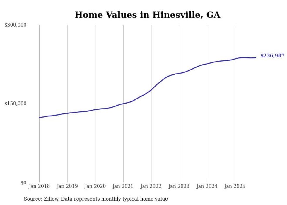 Cities with the most expensive homes in the Hinesville metro area