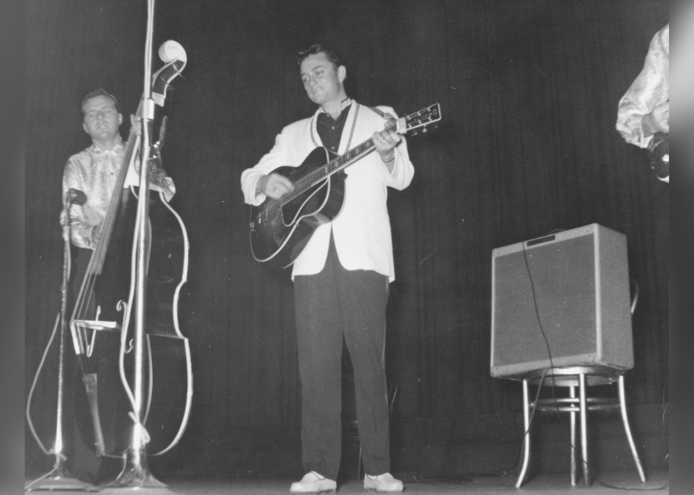 Johnny Cash became known as an iconic American country, folk, and rock singer in the 1950s. But he actually got his start abroad. Cash taught himself to play the guitar and write songs while stationed in Germany serving in the U. S. Air Force.