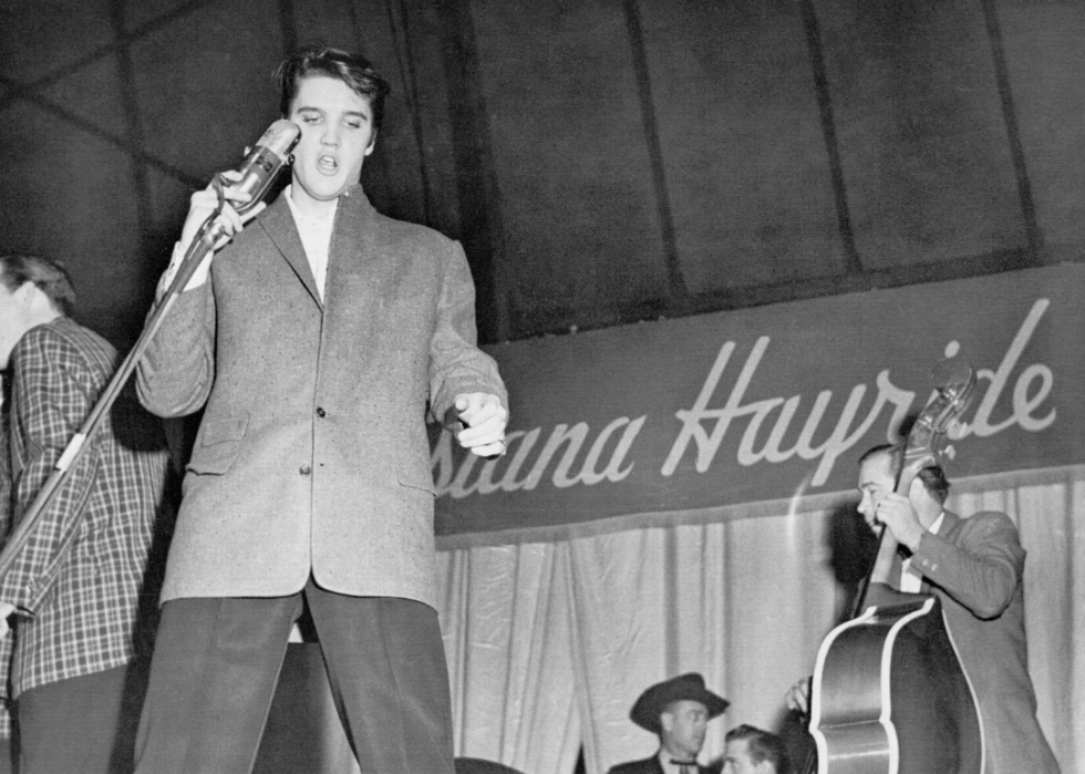 Elvis was one of the biggest superstars in American music, hitting it big in the postwar era with his distinctive croon. When he was first starting out, however, he had to work odd jobs to make ends meet. Elvis traveled around the South singing where he could while working these jobs. His first record was "That's All Right," but his first hit was "Heartbreak Hotel."