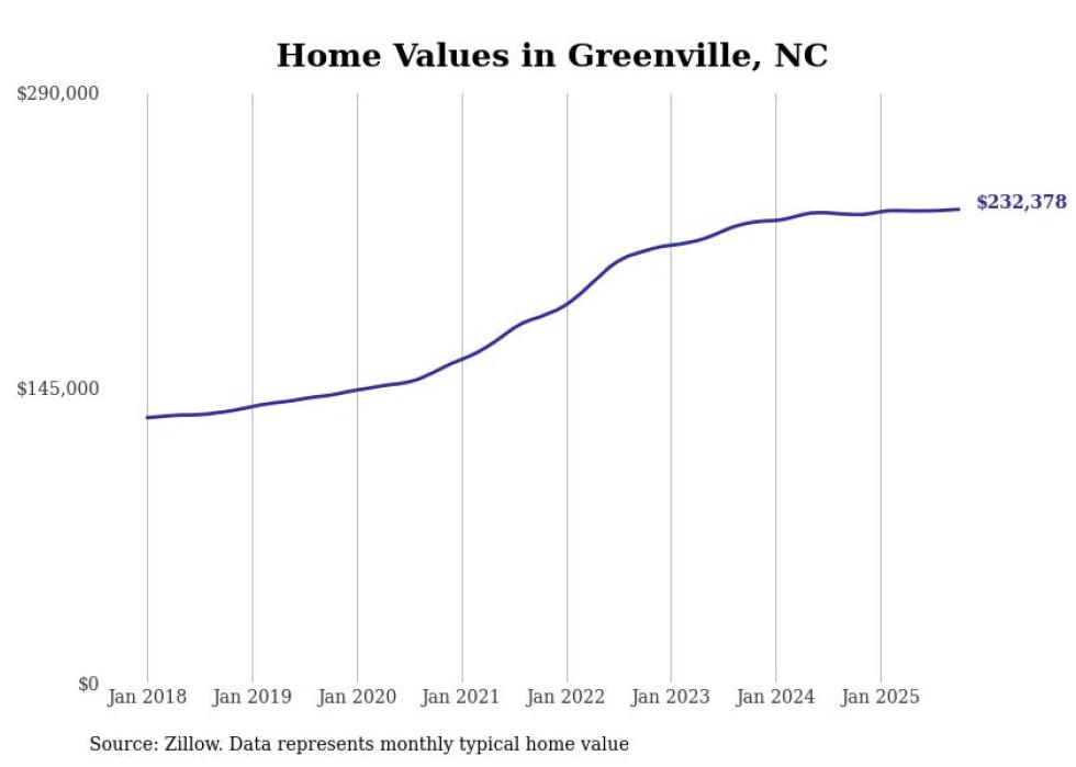 Cities with the most expensive homes in the Greenville, North Carolina metro area