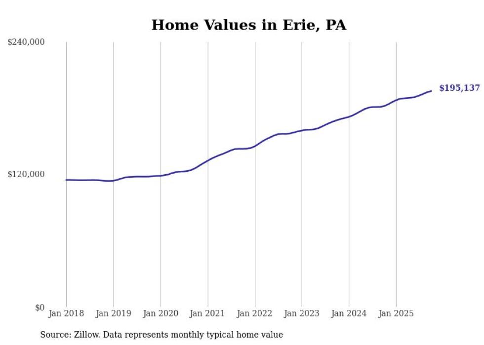 Cities with the fastest-growing home prices in the Erie metro area