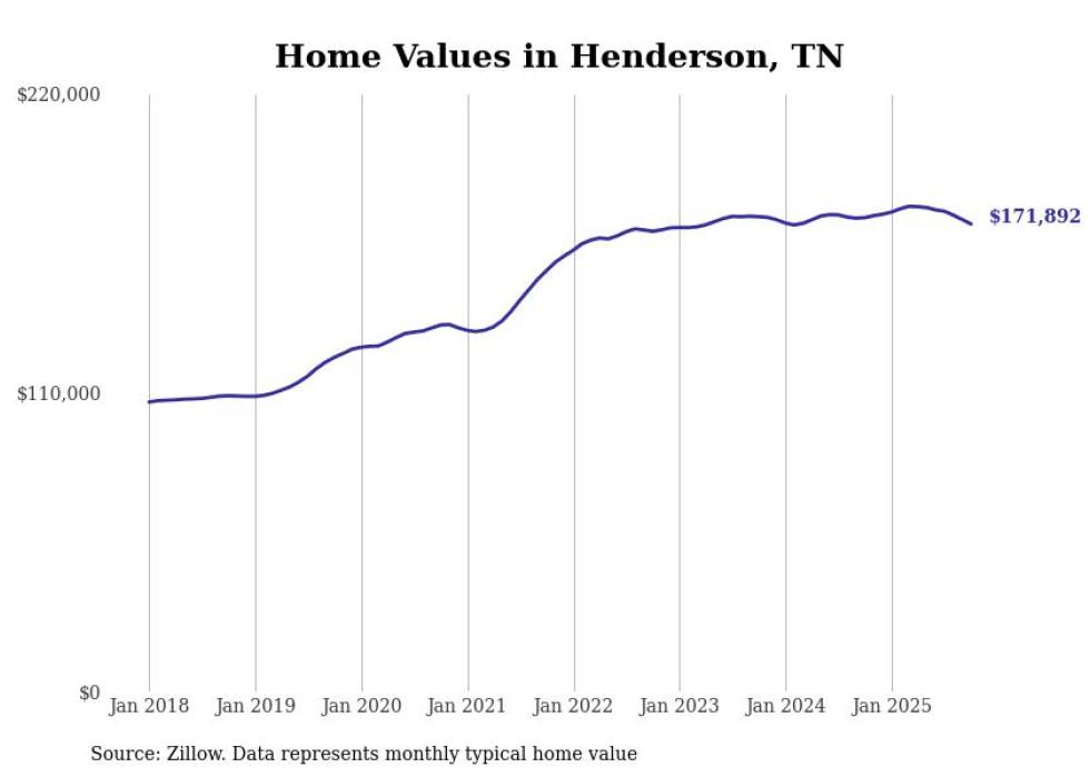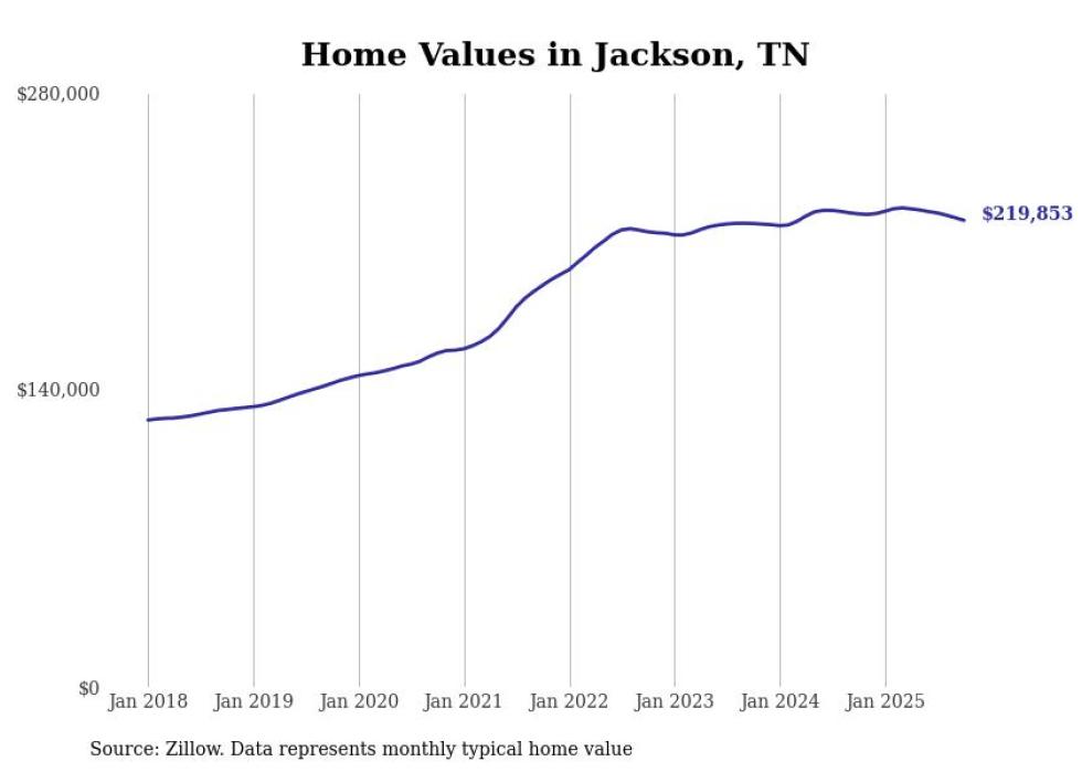 Cities with the fastest-growing home prices in the Jackson, Tennessee metro area