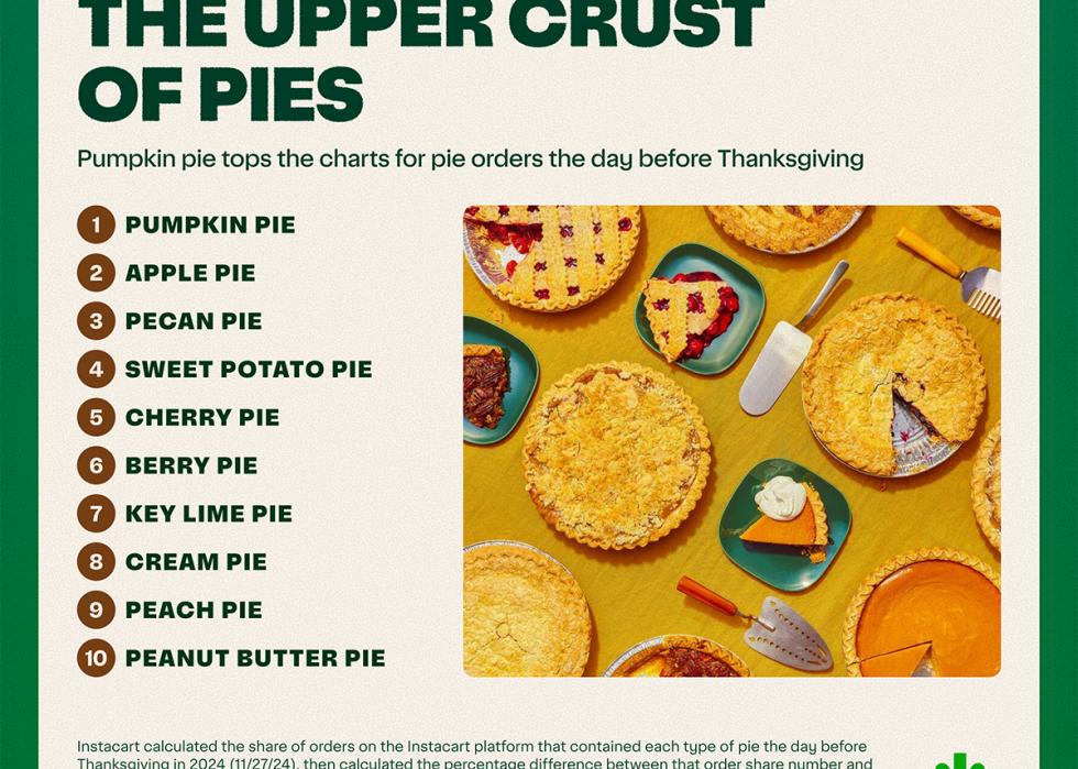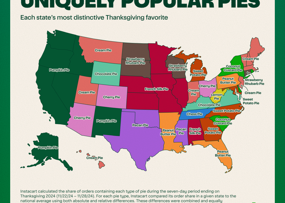 Here's what Instacart data reveals about the most uniquely popular pies by state for Thanksgiving 2024: